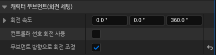 - 캐릭터 무브먼브 컴포넌트를 선택 후 디테일 창에서 "무브먼트 방향으로 회전 조정" 체크