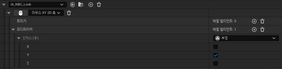 - IMC_DefaultMappingContext 에서 "부정" 모디파이어 생성 후 Y값만 체크한다.