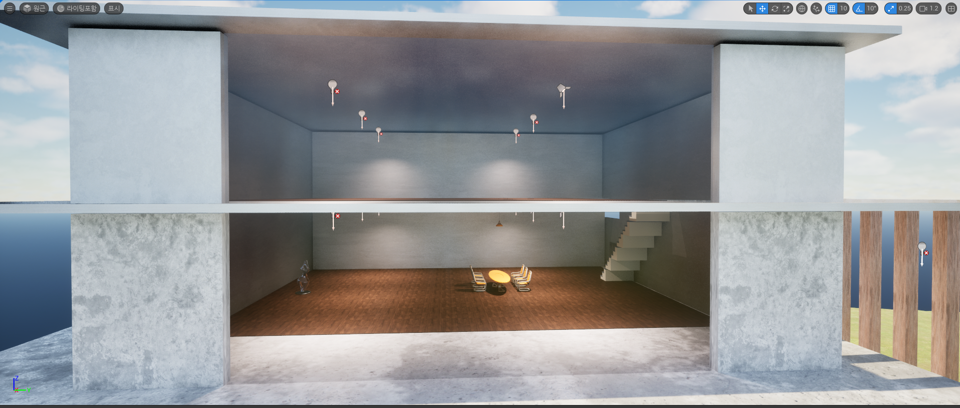 오늘 과제에서 구체적으로 어떻게 만들으라는 설명이 없어 그 동안 배워온 레벨 생성 및 머터리얼을 적용해서 구현 했다. 물론 결과물이 엄청나다고 생각은 하지 않지만 배워왔던 부분을 되돌아보며 상기 시킬 수 있는 과제가 되었다.