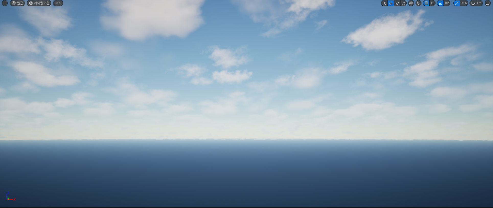 3. 다시 World 레벨로 돌아와 방금만든 BP_Sky 블루프린트를 배치