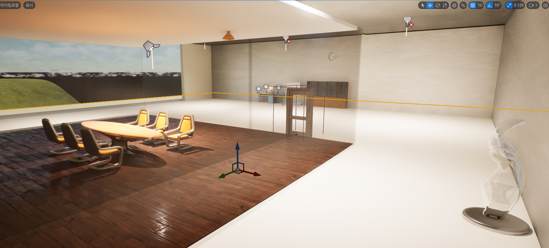 이전의 과제로 만든 캐릭터의 움직임과 상호작용으로 문을 여는 것을 사용하여 실험실을 만들 수 있었다.