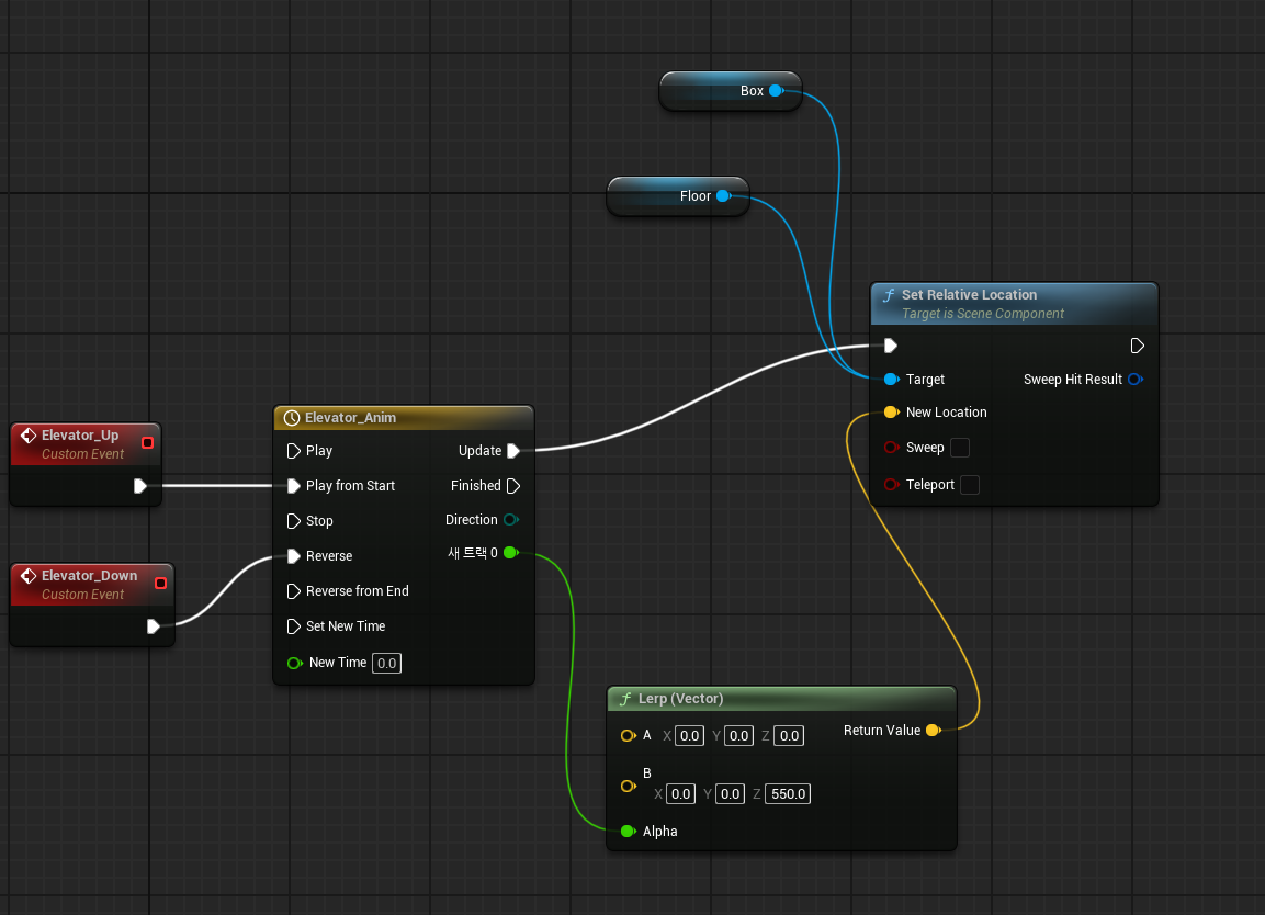 - Set Relative Location / Get Floor / Get Box / Lerp(Vector) 노드를 생성 후 이어준다